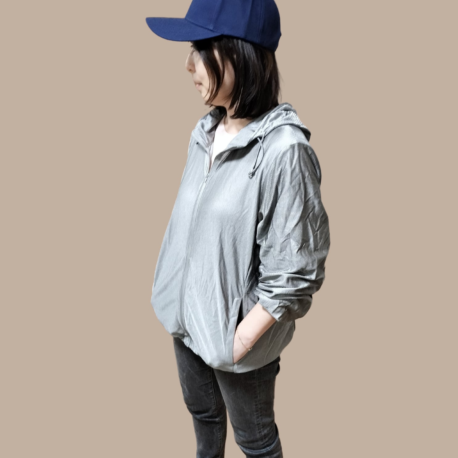 ニットタイプではなく、大変貴重で高価な銀混合綿を編み込んだ透け感がある生地で作ったフーディーです。