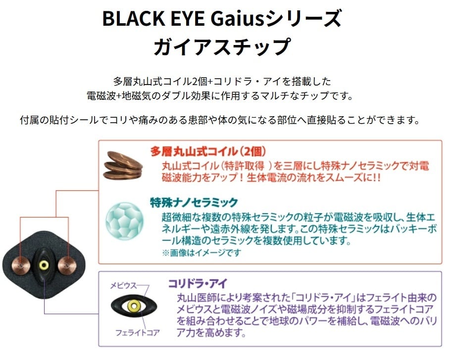 『丸山式コイル ブラックアイ』の人工電磁波へ対抗する能力を大幅にパワーアップさせた『ブラックアイ ガイアス』シリーズ!