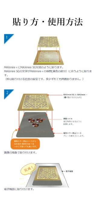 より強力な電磁波対策を望む場合は、MAXmini5G、MAXmini+、丸山式コイル、磁気エラーシートの組み合わせでご使用ください。