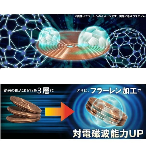 ブラックアイで使用している丸山式コイルを3層にし、フラーレンセラミックと組み合わせることで、より強化された対電磁波コイルとして開発された『多層丸山式コイル』