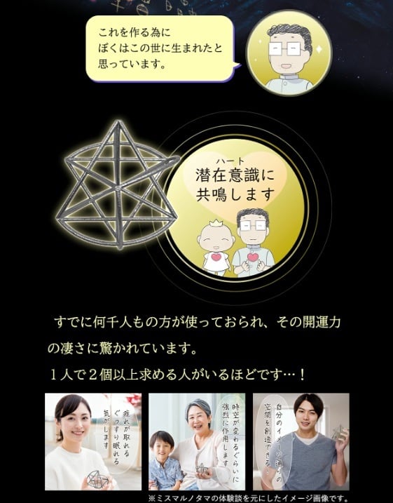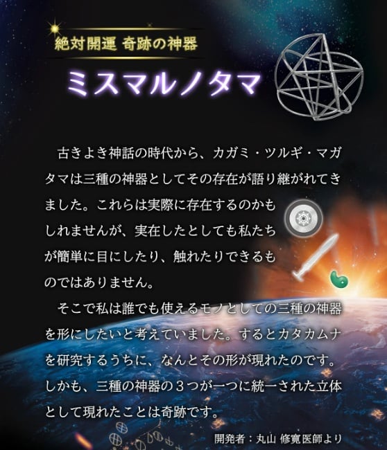 実際に『ミスマルノタマ ネックレストップ』を左回りに回しただけで、多くの患者さんの不調がやわらいだり、空間に漂うマイナスエネルギーが浄化されたり、表情が穏やかになり心身がわかわかしくなったりといった、不思議な体験談が次々と寄せられています。小さな回転が、あなたの心とからだ、そして目の前の現実そのものを調和へと導いてくれるのです。