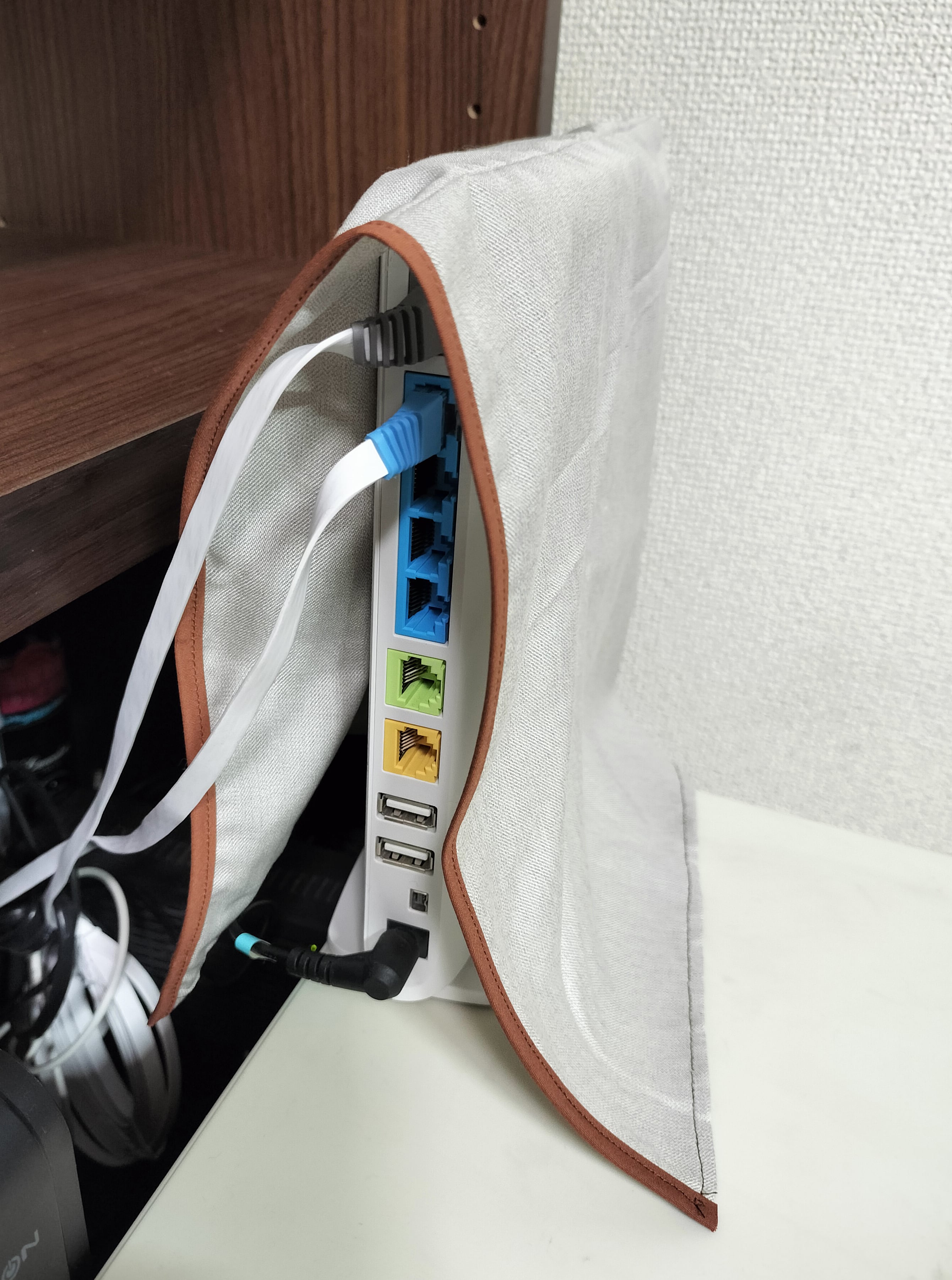 ワイファイルーターの電源を落としたくても、家庭の事情でできない方からの相談をもとに製作したカバーです。完全に覆ってしまうのでは無く、後方の隙間からのみ出すことで直撃を避け、出力を隙間の大きさにより50%~95%減衰させることが可能です。被せ方は家庭内状況により調整してください。